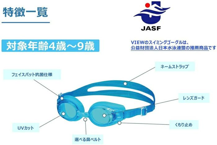 他の画像を見る お子様でも安心の抗菌仕様 傷がつきにくい長持ちタイプ VIEW ビュー スイミングゴーグル 水泳 クッション付き ジュニア用 クリアレンズ V710J 定価 ¥ 1,320 のところ 当店特別価格 ¥ 1,001 税込 ★カートに入れる★ お気に入りに登録する