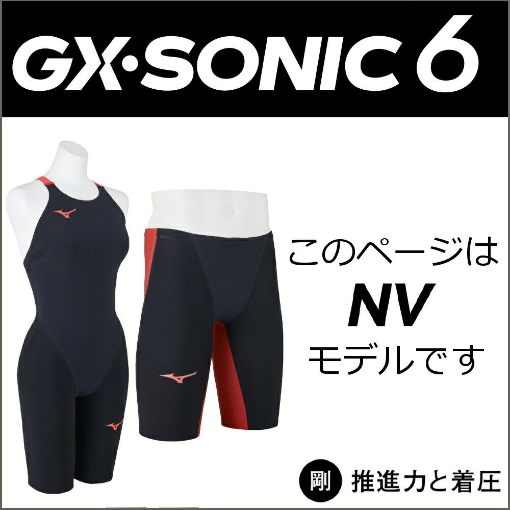 ミズノ 競泳水着 レディース GX SONIC6 NV WA承認モデル GX SONIC VI ハーフスーツ 布帛素材 競泳全種目 短距離~中・長距離 選手向き MIZUNO 高速水着 女性用 ブラック×レッド N2MGA701 fina マーク あり